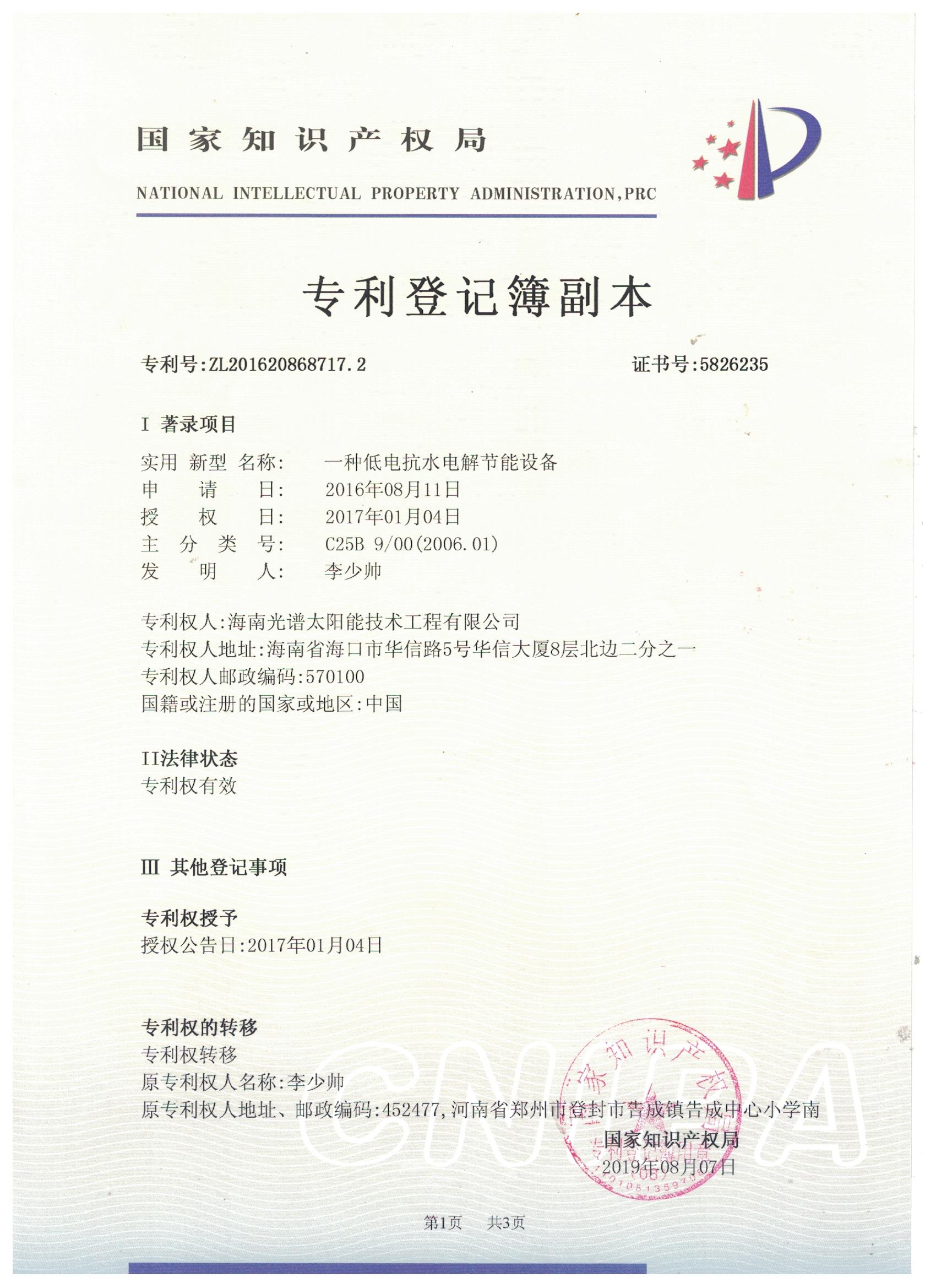 近日,我司申報的“一種太陽能熱泵蒸汽發生裝置”發明專利通過審查,獲得國家知識產權局授予的發明專利證書,授權專利號為“ZL201911126309.4”。 此次獲得國家頒發的專利證書,是對海南光譜公司創新實力的認可,代表著我司知識產權取得了突破性進展,為公司的持續性發展提供強有力的科技創...